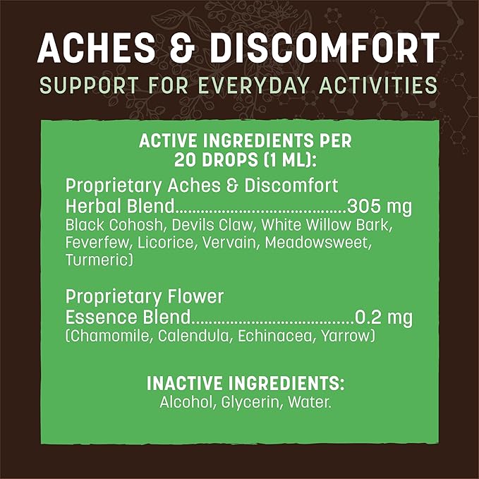 - ACHES & DISCOMFORT: Daily homeopathic drops may help soothe occasional discomfort associated with everyday activities.