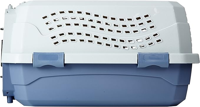 Amazon Basics 2-Door Top-Load Hard-Sided Cat Pet Travel Carrier, 19.0" L x 12.6" W x 10.0" H, Gray & Blue