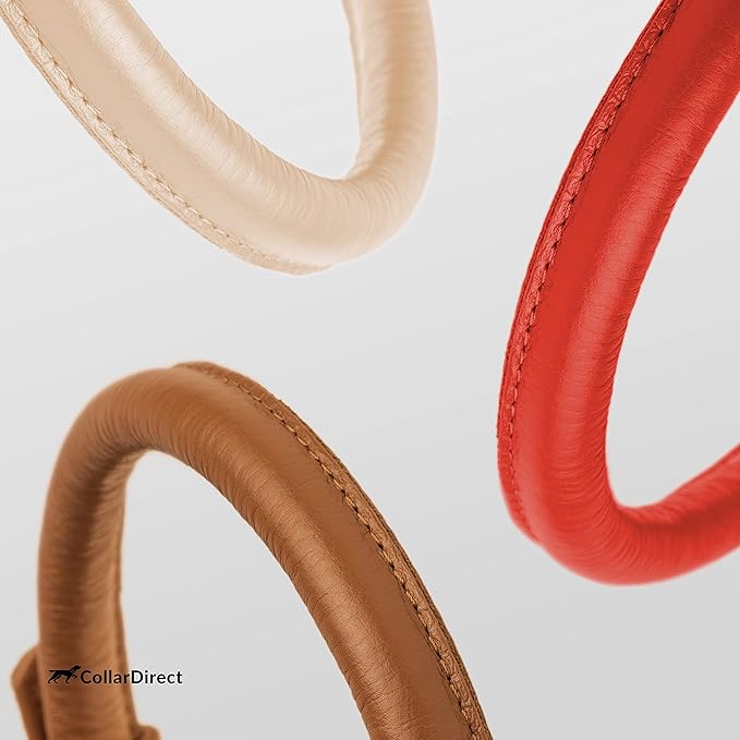 CollarDirect Rolled Leather Dog Collar, Soft Padded Round Puppy Collar, Handmade Genuine Leather Collar Dog Small Large Cat Collars 13 Colors (8-11 Inch, Red Textured)