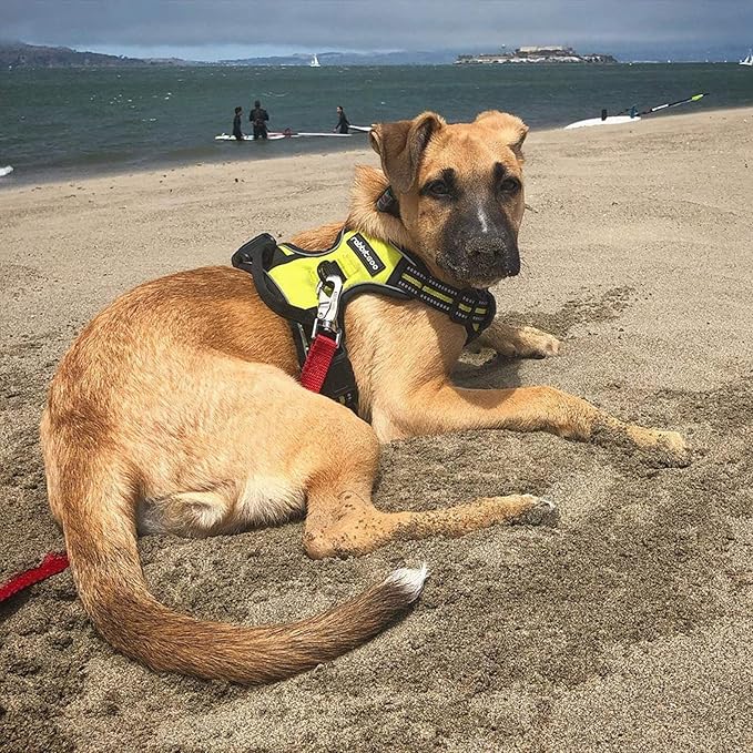 - Safe and Comfortable - Your dog will enjoy the daily walk in this comfort dog harness! Made of sturdy nylon oxford and padded with soft cushion to protect your dog's skin. Breathable air mesh keeps your dog cool during outdoor activities. Super bright reflective strips ensure a safe walk both day and night