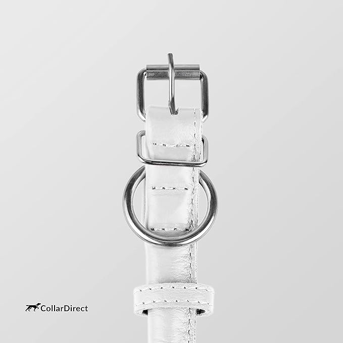 CollarDirect Rolled Leather Dog Collar, Soft Padded Round Puppy Collar, Handmade Genuine Leather Collar Dog Small Large Cat Collars 13 Colors (6 Inch, White Textured)