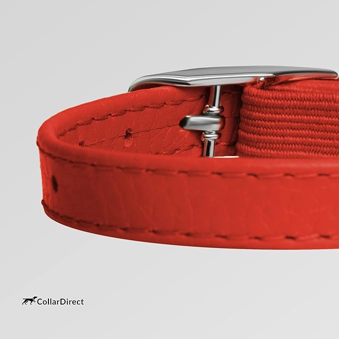 CollarDirect Leather Cat Collar, Cat Safety Collar with Elastic Strap, Kitten Collar with Bell Black Blue Red Orange Lime Green (6-7 Inch, Red)