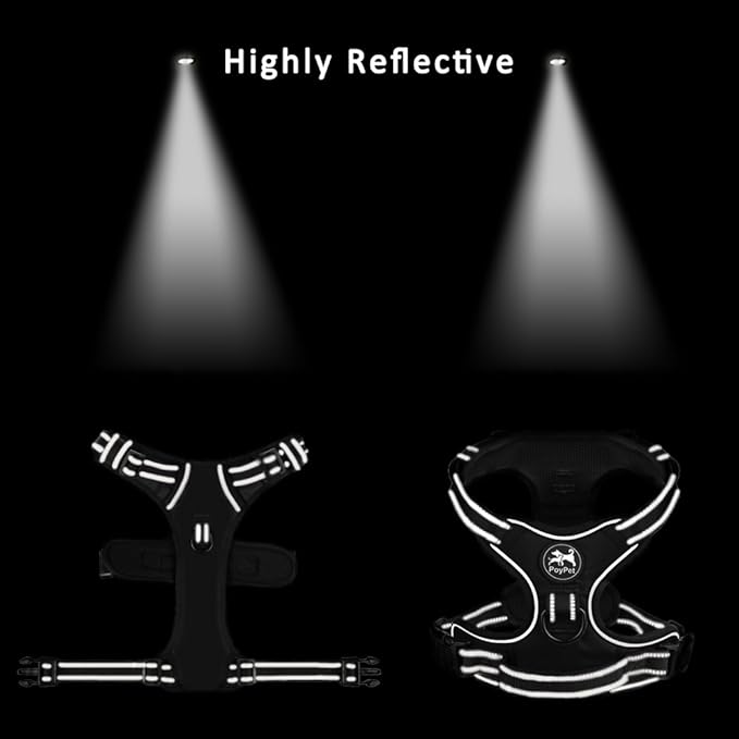 PoyPet No Pull Dog Harness, Reflective Comfortable Vest Harness with Front & Back 2 Leash Attachments and Easy Control Handle Adjustable Soft Padded Pet Vest for Small to Large Dogs (Pink,XL)
