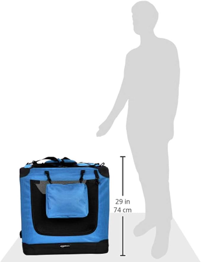 Amazon Basics Folding Portable Soft Pet Dog Crate Carrier Kennel, 36 x 24 x 24 inches, Blue