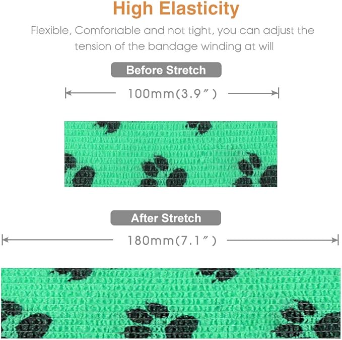 - โ High Elasticity & Self Adhesive - Self adhesive bandage wrap ratio of over 180%, providing adjustable tightening force and excellent support. AUPCON Vet Wrap sticks to itself not the hair and skin.It is great for applications where adhesive is not wanted. Itโs great for Great for emergency aid kits and field activities.