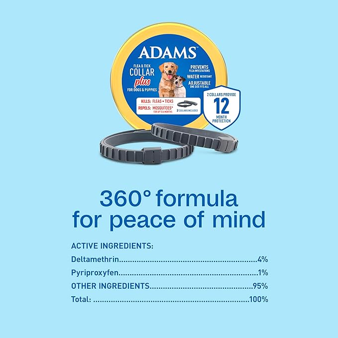 Adams Flea & Tick Collar Plus for Dogs & Puppies |2 Pack |12-Month Protection |One Size Fits All Dogs & Puppies 12 Weeks and Older |Kills Fleas and Ticks |Repels Mosquitoes (excluding California)