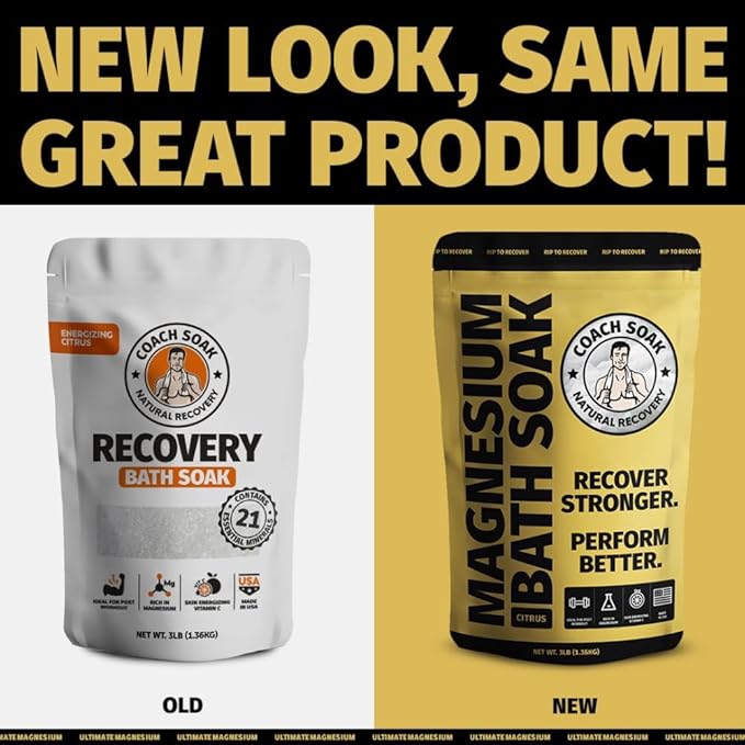 Coach Soak Recovery Bath Soak - Faster Absorption Than Epsom Salt for Pain - Rejuvenating Magnesium Flakes with 21 Minerals, Essential Oils & Bath Salts, 3lbs (Energizing Citrus)