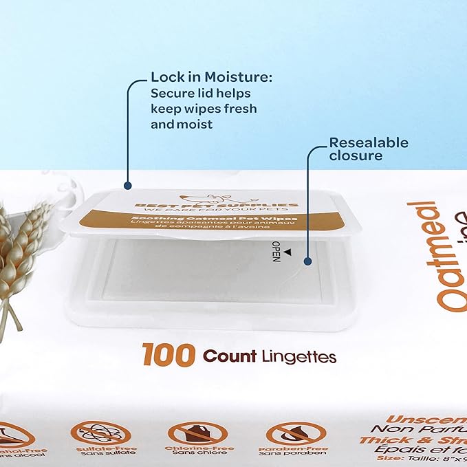 Best Pet Supplies Pet Wipes for Dogs - Dog Wipes Cleaning Deodorizing, or Coats, Ears, Paws - Soothing Oatmeal, 100 Count
