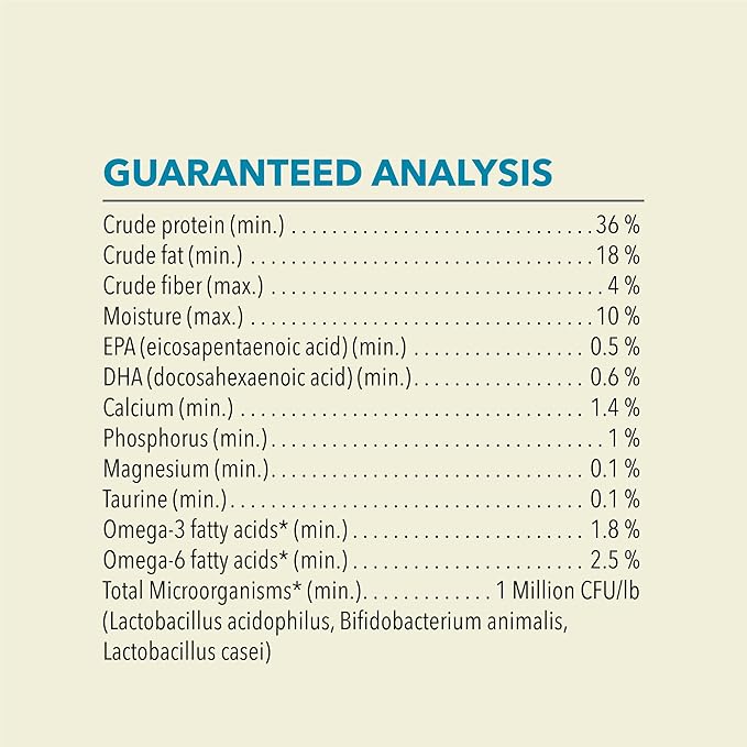 - Fiber plus a blend of probiotics helps support cat digestive health, balanced omega-3 and omega-6 fatty acids help support healthy skin and a shiny coat and taurine, EPA and DHA help maintain eye and heart health