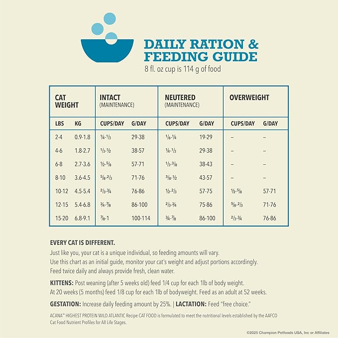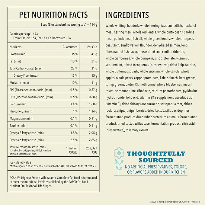 - One (1) 4 lb bag of ACANA Highest Protein* Wild Atlantic Saltwater Fish with Freeze-Dried Liver Dry Cat Food