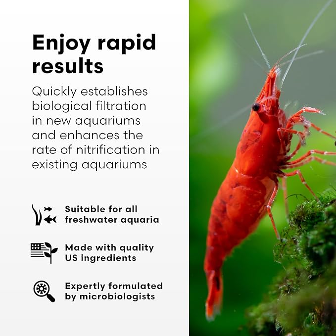 - RAPID WATER CYCLING – Optimize your aquarium’s health swiftly with this shrimp safe fast-acting solution. Quickly accelerate the tank's beneficial nitrifying bacteria population for balance and stability in just 5-7 days. It’s the ideal solution when time is crucial