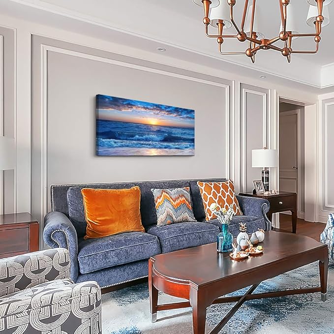 Canvas wall art for living room Blue Ocean Sea sun landscape painting bathroom Wall Decor Ready to Hang for Home Decorations office family bedroom kitchen Works canvas Prints pictures 30" x 60"inch
