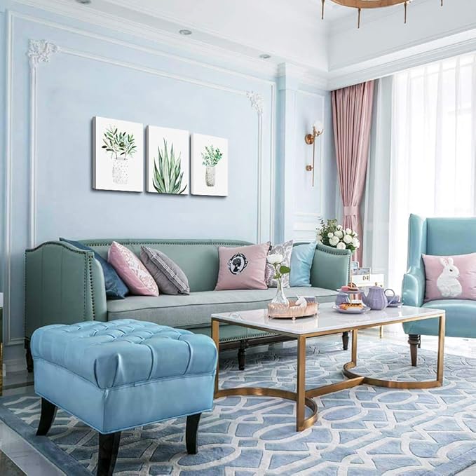 farmhouse Wall Art painting for dining room bathroom Abstract Canvas art family Wall decor for Bedroom kitchen Wall Decoration Living Room decor art Green Leaf pictures Artwork for home walls 3 piece