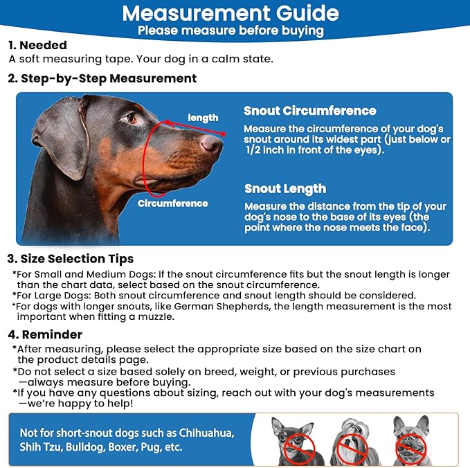 - Train Before Use: Improper wearing, inappropriate size, and lack of muzzle for dogs' desensitization training can cause dogs to resist wearing muzzles and easily take them off and bite them. Therefore, before using this product, please follow the instructions and watch the video on the details page to patiently train your dog to accept the muzzle and then use it normally