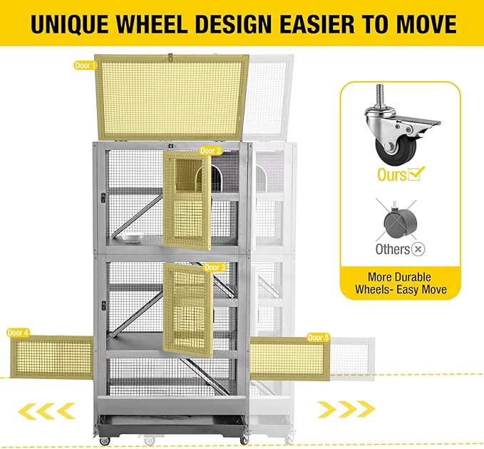 - Upgraded Deluxe rat cage comes with 5 Levels connect with 4 ramps provides spacious room for exploring and climbing, the small resting house making much fun for your pets