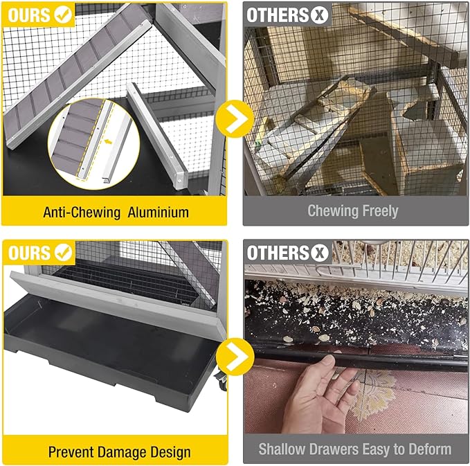 - Guinea Pig cage using thicker plastic no leak pull out tray from back and front, it will never leak or go moldy, easy to clean, chewing toy & metal feeder are included.