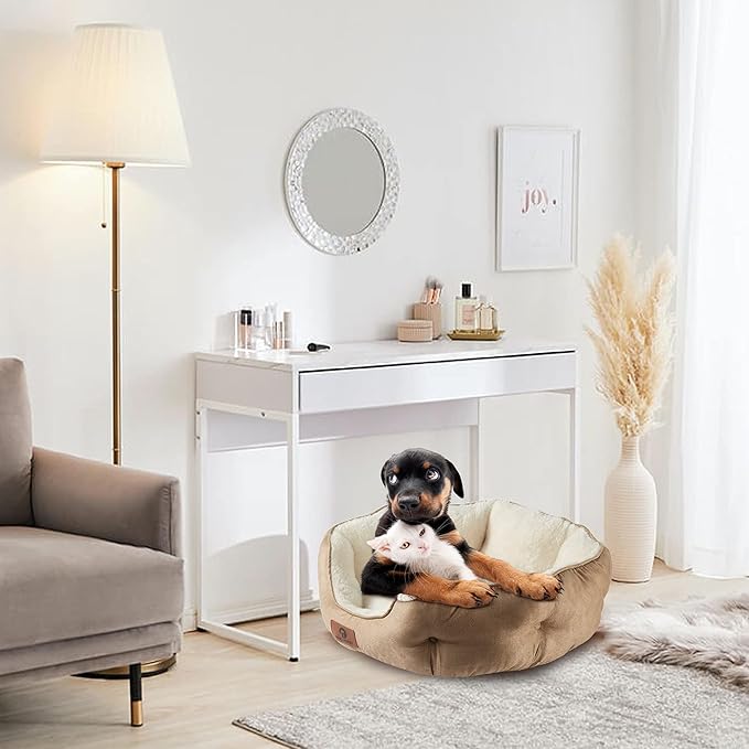 Asvin Small Dog Bed for Small Dogs, Cat Beds for Indoor Cats, Pet Bed for Puppy and Kitty, Extra Soft & Machine Washable with Anti-Slip & Water-Resistant Oxford Bottom, Light Brown, 20 inches