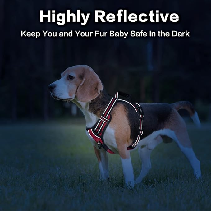 PoyPet No Pull Dog Harness, No Choke Front Clip Reflective Dog Vest with Soft Padded Vertical Handle, 3 Leash Attachments for Small Medium Large Dogs (Red,S)
