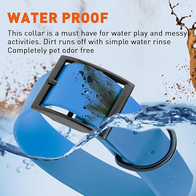 - Free Your Dog to romp in puddles and retrieve from lakes with the Dogline Biothane Waterproof Dog Collar. This water-repellent collar stays dry and odor-free, without shrinking or losing flexibility.