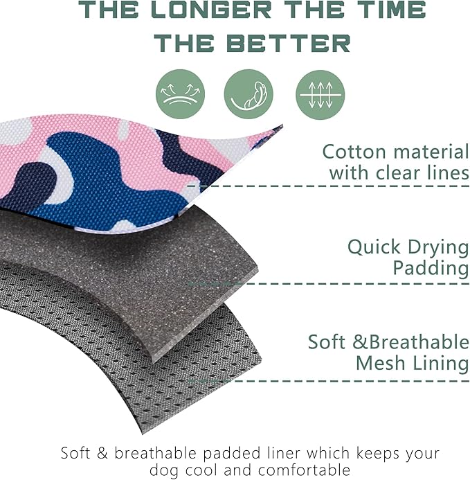 - ๐พDUARABLE & BREATHABLE MATERIAL: All Day Comfort.๐พ The heavy-duty vest made of soft cotton fabric with clear texture for the beautiful appearence. Extra durability and wear-ability, suitable for all field use. The soft padding can protect your dog's skin, while the breathable air mesh keeps your dog ventilated and comfortable. We will protect the comfort and health of the dog together with you.