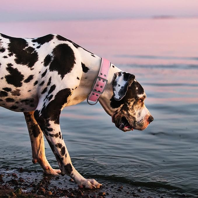 Fida Heavy Duty Dog Collar 1.5” Width, Ultra Soft Neoprene Padded, Adjustable Reflective Nylon Pet Collar with Two Metal Pin Belt Buckle for Large/X-Large Breeds (XL, Pink)