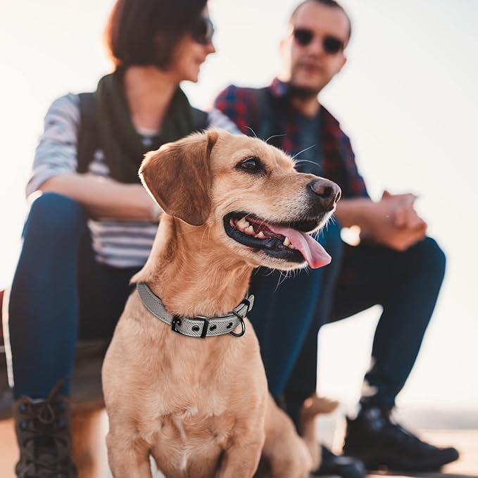 Fida Heavy Duty Dog Collar, Ultra Comfortable Soft Neoprene Padded, Adjustable Reflective Nylon Pet Collar with Durable Metal Belt Buckle for Small Breeds (S, Grey)