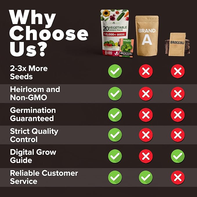 - HIGH GERMINATION RATES β GROWN AND PACKAGED IN THE USA. Every seed is sourced, tested, and packed in the USA to ensure quality and consistent germination. With a focus on dependable results, this pack is a reliable choice for families growing their own food or starting a backyard project. These seeds are compatible with a wide range of climates and offer steady performance from planting to harvest.