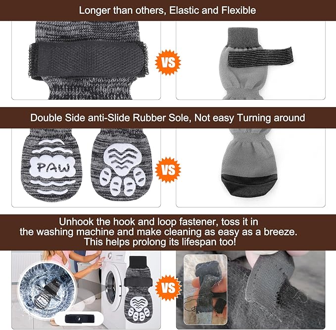 - Anti-slip: With a three-sided non-slip rubber sole, your pet's paws will have a good grip on the floor. For hardwood floors, if your baby's paws have a problem slipping on wood floors, we recommend you buy these socks with a anti-slip adhesive. Use non-slip socks to help heal foot wounds and prevent the dog from licking and further irritating the wound. โ ๏ธPlease note that we have a design patent to protective this exclusive design!