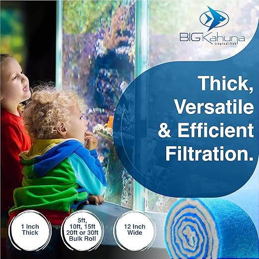 Big Kahuna Aquarium Filter Floss Rolls – 12-inch Pond and Aquarium Filter Media – 1-inch Thick Wet/Dry Aquarium Filter Pad – Bonded Filter Media Pad for Freshwater or Marine Aquariums, Ponds – 20ft