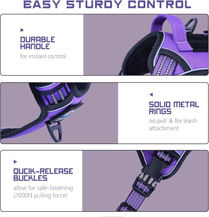 BUMBIN Tactical Dog Harness for Small Dogs No Pull, Famous TIK Tok No Pull Puppy Harness, Fit Smart Reflective Pet Walking Harness for Training, Adjustable Dog Vest Harness with Handle Purple S