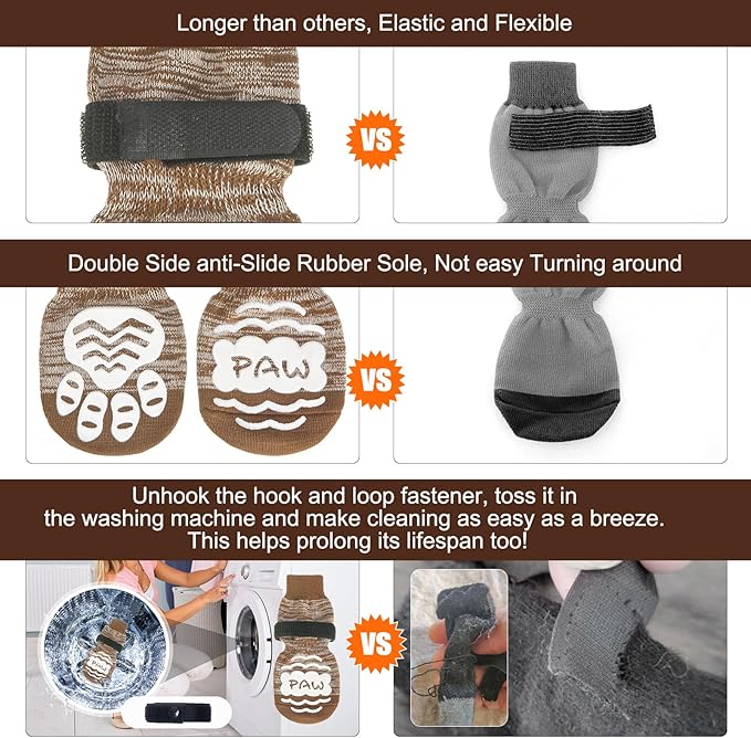 - Anti-slip: With a three-sided non-slip rubber sole, your pet's paws will have a good grip on the floor. For hardwood floors, if your baby's paws have a problem slipping on wood floors, we recommend you buy these socks with a anti-slip adhesive. Use non-slip socks to help heal foot wounds and prevent the dog from licking and further irritating the wound. โ ๏ธPlease note that we have a design patent to protective this exclusive design!
