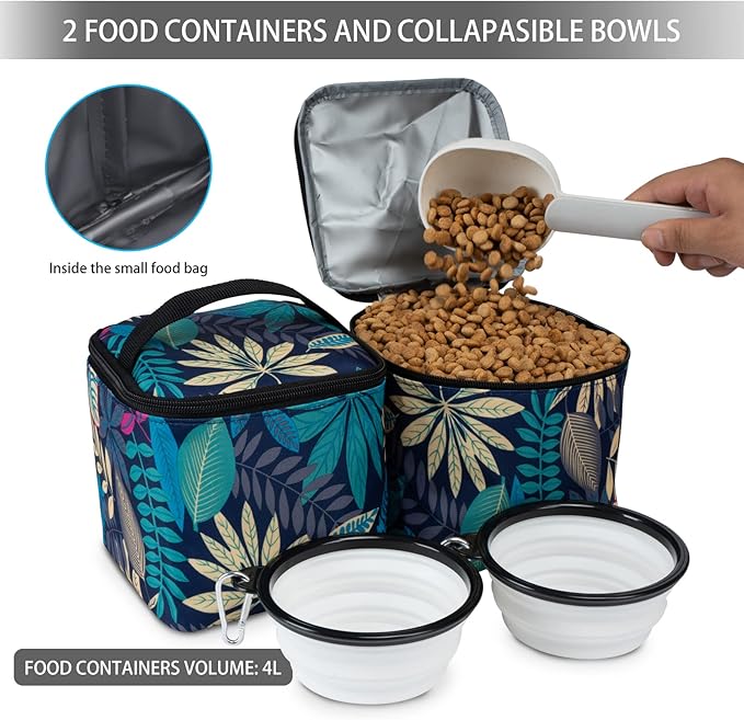 BAGLHER Pet Travel Bag, Double-Layer Pet Supplies Backpack (for All Pet Travel Supplies), Pet Travel Backpack with 2 Silicone Collapsible Bowls and 2 Food Baskets Hawaii
