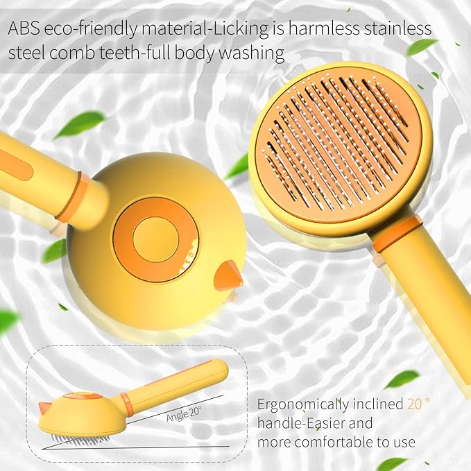 - 🐱【High Quality Cat Hair Brush】This pet grooming brush is made of ABS eco-friendly material and stainless steel comb teeth, which are environmentally friendly and healthy, harmless to combing and harmless to licking. The entire body is washable, making it easier to clean and wash. The ergonomic 20° tilt handle makes it easier to use. You will find grooming your dog and cat very fun and relaxing.