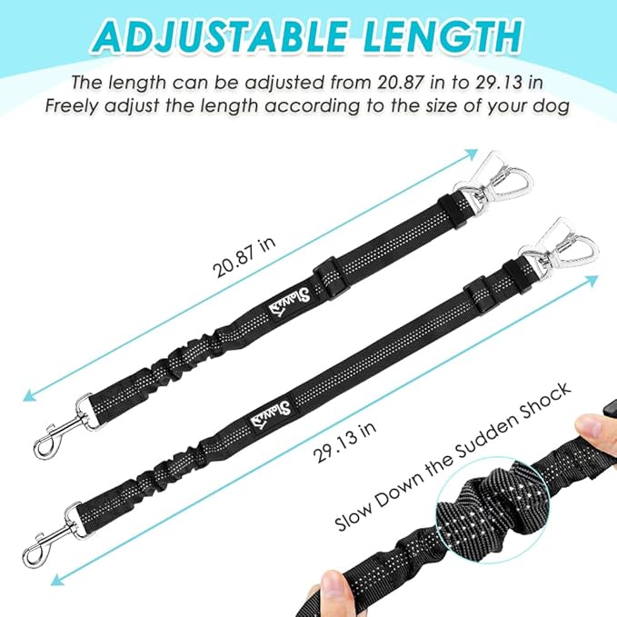 SlowTon Dog Seat Belt Harness for Car, Dog Car Harness Adjustable Mesh Breathable & Dog Seatbelt Safety Tether with Elastic Bungee for Small Medium Large Pets(Light Blue, Double Clip, XXXS)