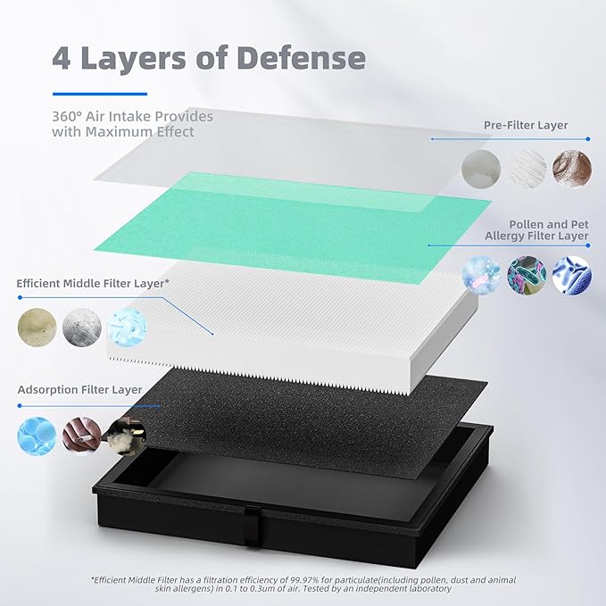 - Impressive Filtration: Impressive filter layer is used, which It can filter airborne such as smoke pollen dander hair smell. Improving air quality and promoting better health and well-being for you.