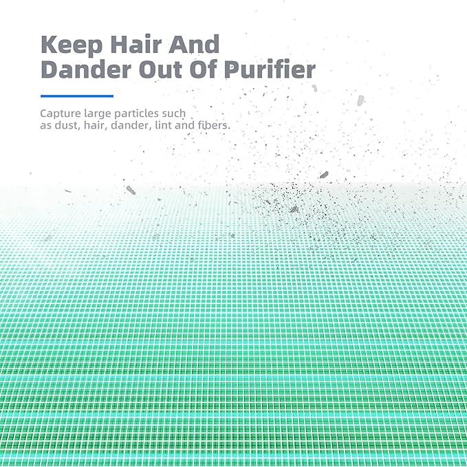 - Prevent Clogging: When hairs, dander, and other large particles meet the pre-filter layer, they will be blocked outside to prevent the air purifier from clogging.