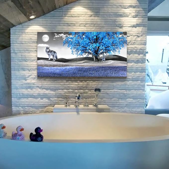 Canvas Wall Art For Living Room Family Wall Decor For Bedroom Modern Office Decorations Blue Tree Wall Pictures Artwork Black And White Scenery Paintings Room Canvas Art Prints Home Decor 20" X 40"