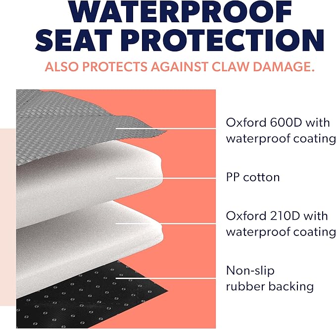 - EASY-TO-CLEAN MATERIALS Γ’ Active Pets dog front seat cover is made exclusively from super easy to clean materials! Crafted with a top layer of premium 600D Oxford waterproof cotton and a middle layer of Oxford 210D with waterproof coating, your seats will remain clean no matter what. In case your pet has dirtied the seat cover, just wipe with a damp cloth or vacuum it and it will be new again in a minute!