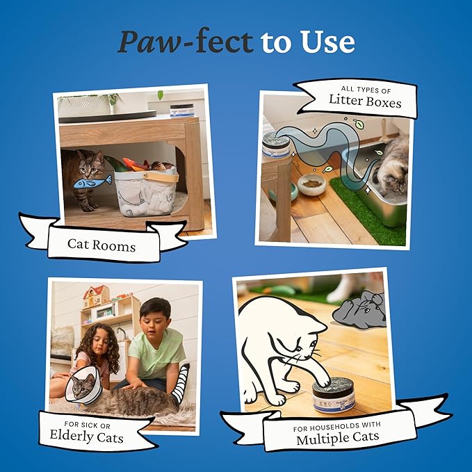 - Plant-Based Litter Box Deodorizer: Eliminate litter box odors with this fast-acting and long-lasting odor removing gel. There’s no perfume to cover up the smells. Just powerful ingredients that stop odors at the source.