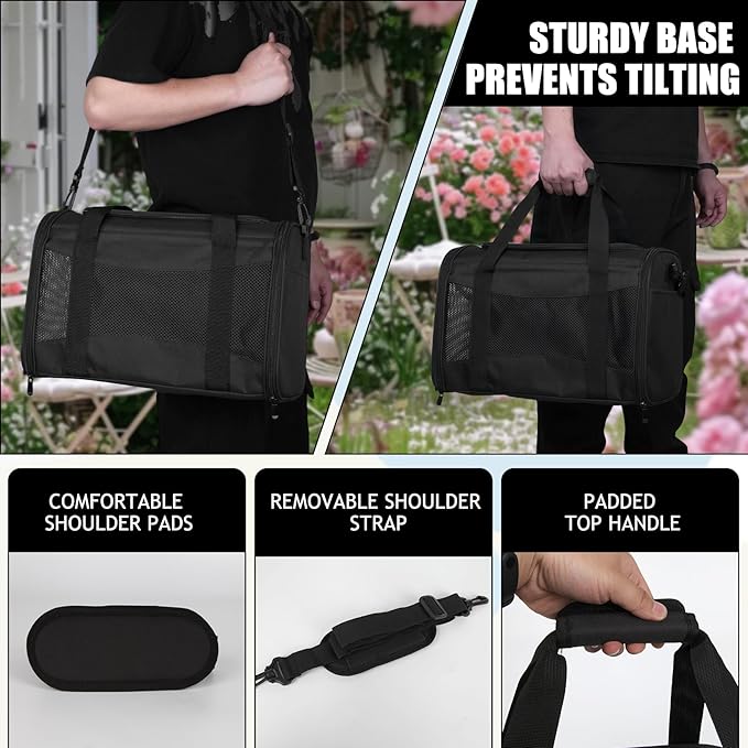 Carriers Soft-Sided Pet Carrier for Cats Dogs Under 15 lbs,TSA Airline Approved with 4 Ventilated Windows(Medium,Black)