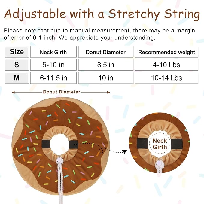 - 🍩Cat Cone Collar Alternative- 1)Kitties have claws and can pop inflatable collars pretty easily; 2)Not comfortable dragging a cat's head around with a plastic cone- Our adorable pet donut protective cone can play, sleep, use the litter, eat, etc. Pillow-like comfort can be used as a pillow cone when they nap.