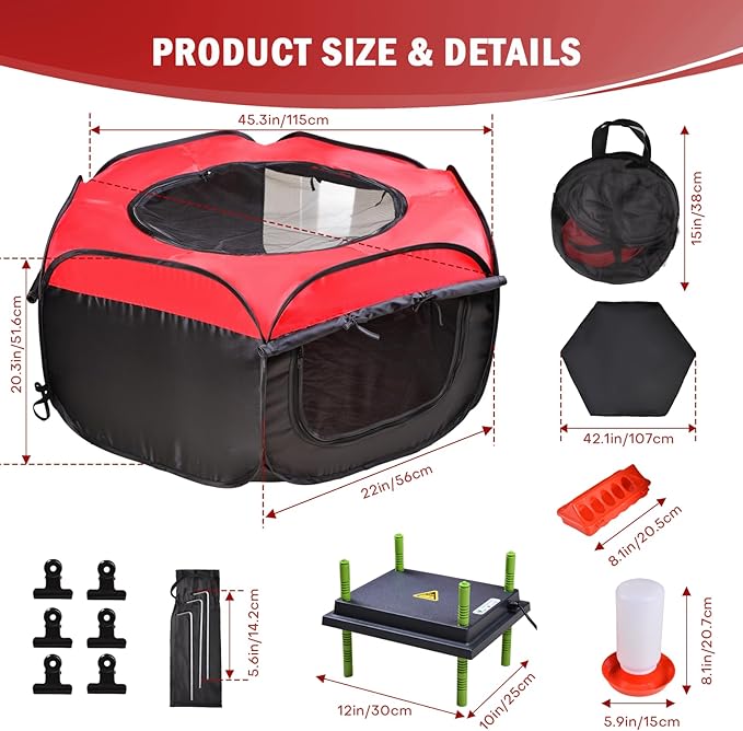 - ALL-IN-ONE BROODER SET - The brooder box includes all essentials for raising chicks: 1*heating plate, 1* chick brooder playpen; 1*pad; 1* storage bag; 3*pegs, 6*clips.