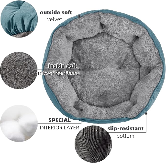 Asvin Medium Dog Bed for Medium Dogs, Cat Beds for Indoor Cats, Pet Bed for Puppy and Kitty, Extra Soft & Machine Washable with Anti-Slip & Water-Resistant Oxford Bottom, Teal, 25 inches