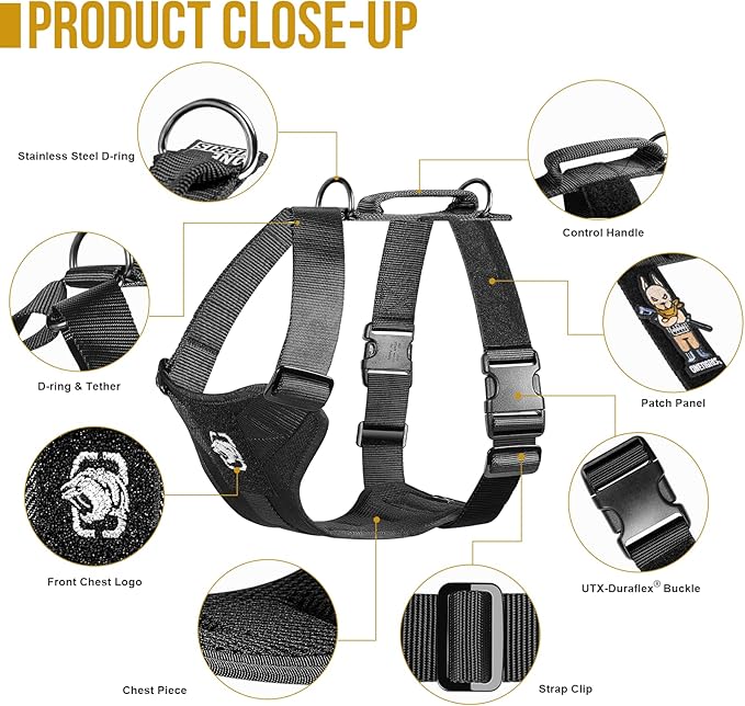 - EFFECTIVE CONTROL - 2 Stainless steel D-rings and a padded traffic control handle to keep your pup safe and maneuver him/her away from trouble during daily walks, hikes and adventures