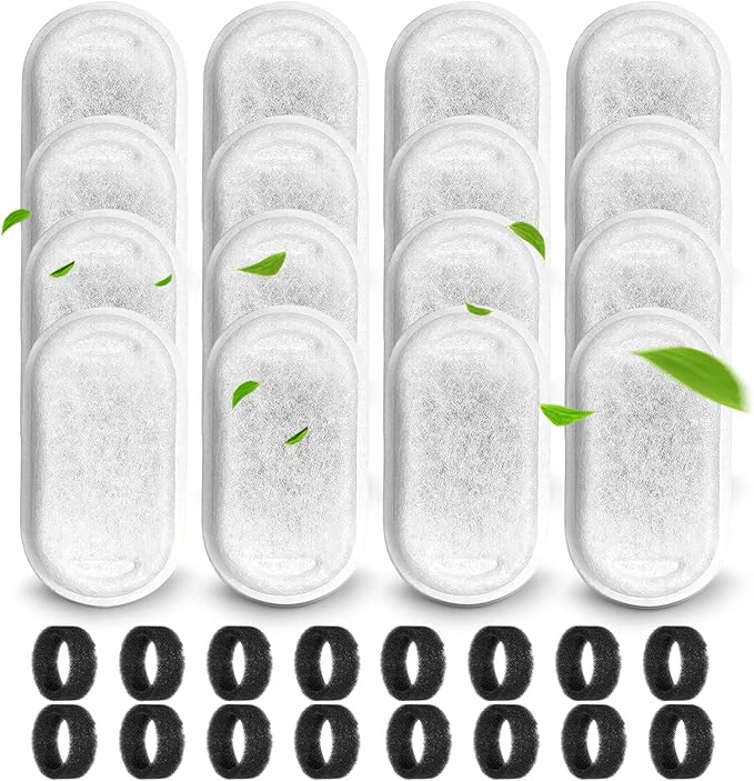 - Three layer circulating filtration system: This cat water fountain filter replacement contains activated carbon, which together with the non-woven fabric form a four layer circulating filtration system. This effectively filters pet hair, food residue, absorbs odors, and softens the water, providing your pet with fresh, healthy drinking water.