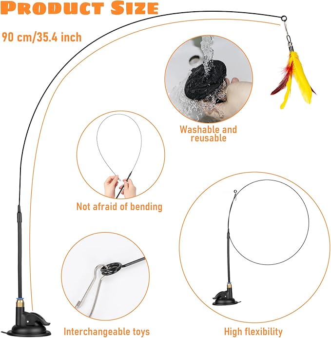 - 【Two Modes to Use】 When you have free time you can pull the wand out of the suction cup to interact with your cat; if you are busy you can insert the wand back into the suction cup and stick it to the smooth surface let your cat play by itself ,so that you can do your own thing