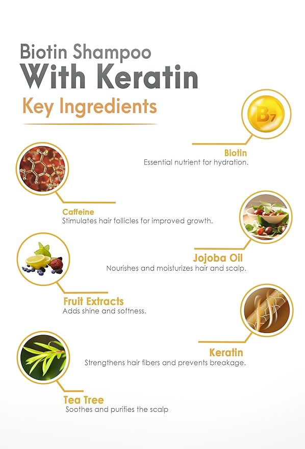- ๐๐ข๐จ๐ญ๐ข๐ง ๐๐ง๐ซ๐ข๐๐ก๐ฆ๐๐ง๐ญ: Experience our potent Biotin Shampoo, a formula tailored to enhance hair growth and strength. Ideal for all hair types, this shampoo biotin infusion promotes overall hair health