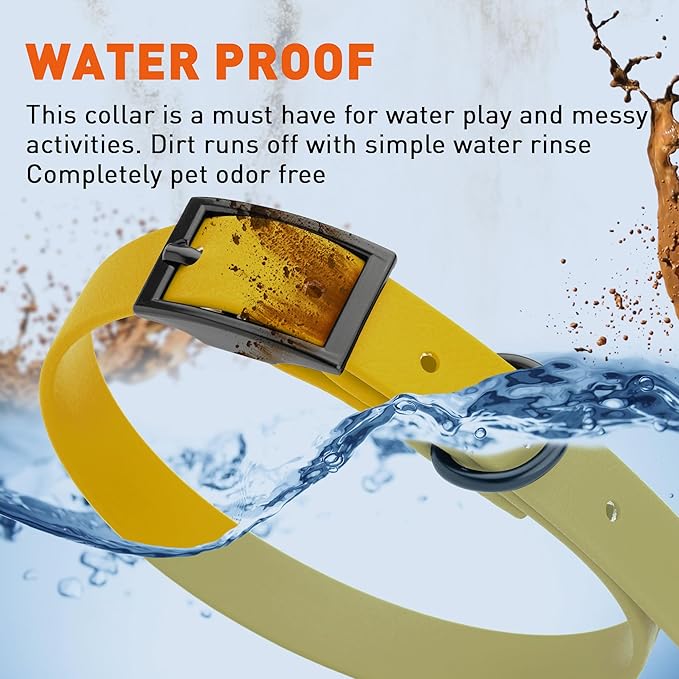 - Free Your Dog to romp in puddles and retrieve from lakes with the Dogline Biothane Waterproof Dog Collar. This water-repellent collar stays dry and odor-free, without shrinking or losing flexibility.