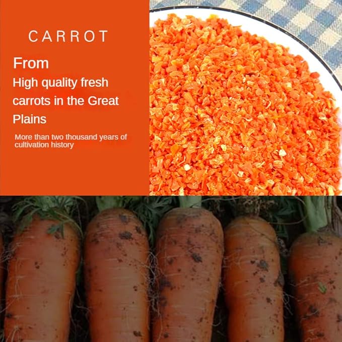 - This is a pet snack. Specification is 12CM*7CM, cylindrical screw cap, 180g vacuum packing. Made of high quality, healthy and delicious carrot raw materials. No frying, no additives