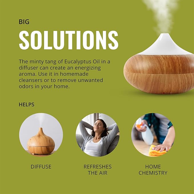 - Natural Aromatherapy Benefits: Experience the natural benefits of eucalyptus oil essential for aromatherapy. Its calming scent is suitable for all seasons